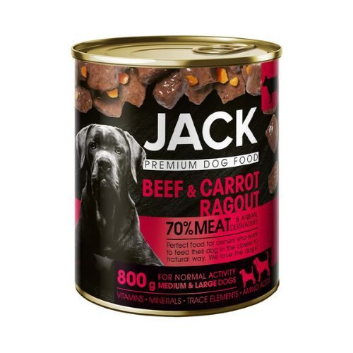Jack konzerva pre psov ragú s hovädzím mäsom a mrkvou 800g